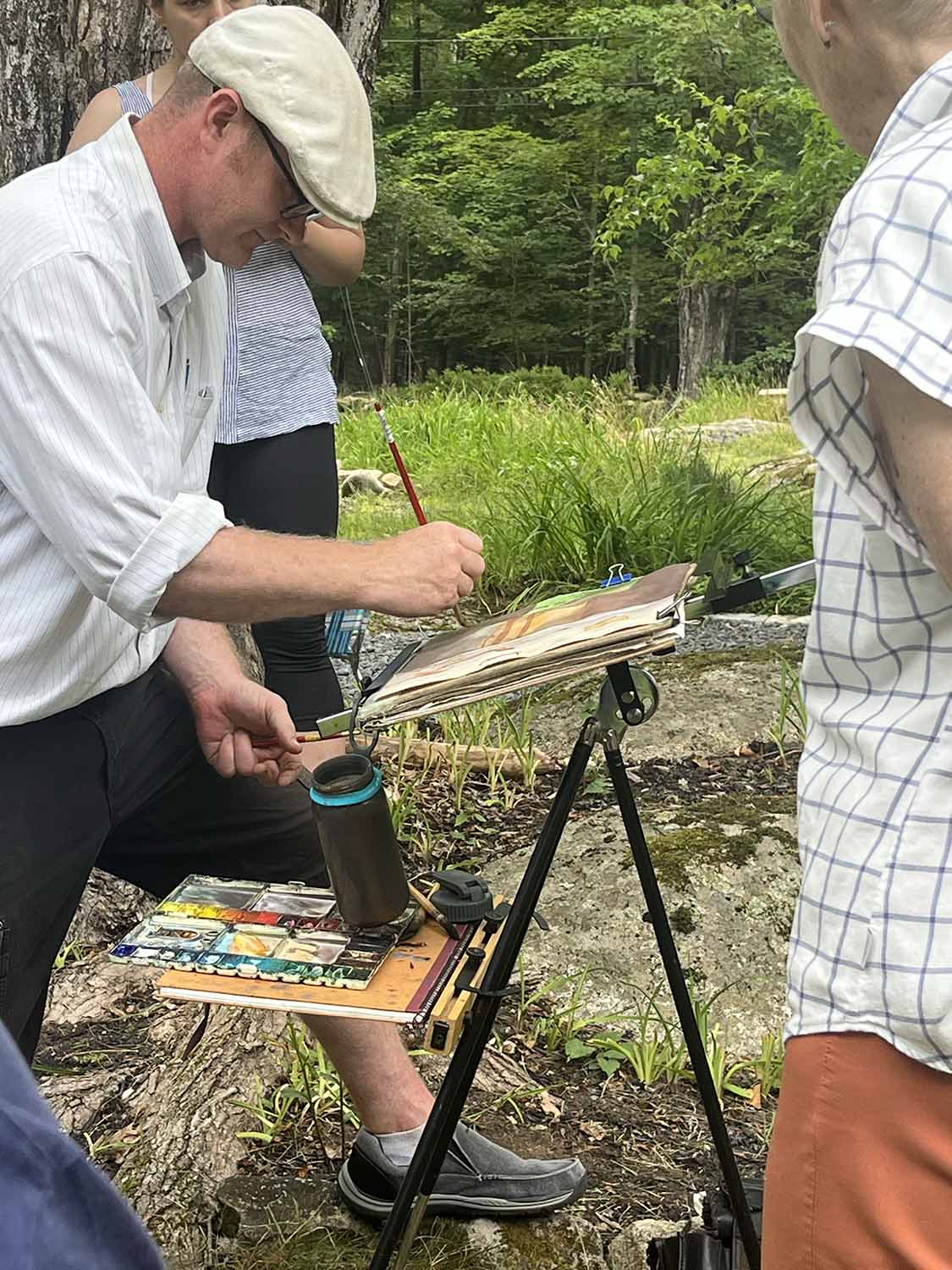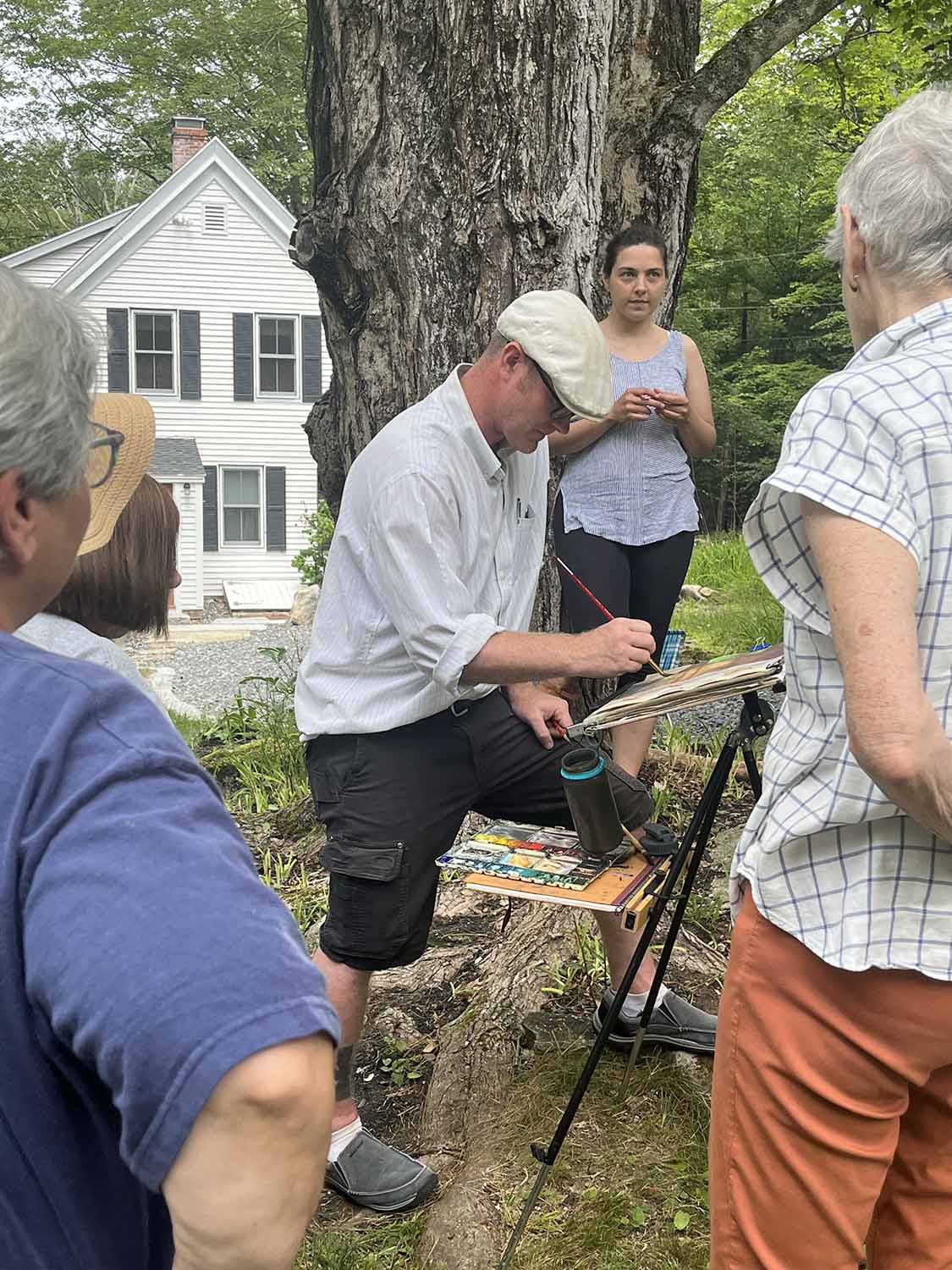 Photos of the Russel Whitten Plein Air Painting Workshop at the Robert Laurent Farm Studio (by OAA Artist Member + President – Ogunquit Arts Collaborative/Barn Gallery, Deidre O’Flaherty)